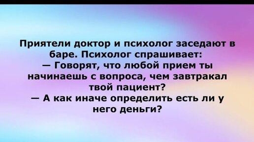 Приятели доктор и психолог заседают в баре. Психолог спрашивает: - Говорят, что любой прием ты начинаешь.. Анекдоты