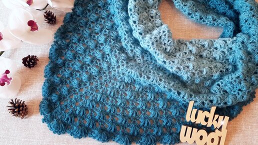Вяжем бактус (шаль) "Зимний вечер" крючком. Легко, раппорт 2 ряда.