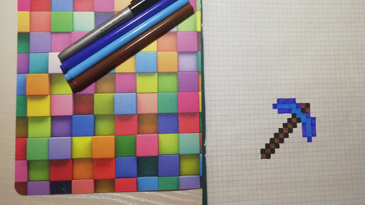 Как нарисовать алмазную кирку из майнкрафта Рисуем по клеточкам