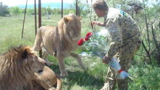Как лев поцеловал человека. Надо было всего лишь прийти с букетом цветов
