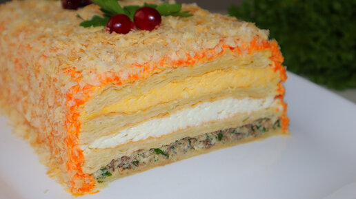 Гости будут в восторге! Обалденный закусочный торт "Наполеон" на новогодний стол 2026!