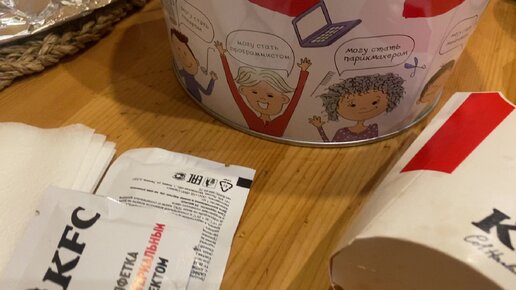Баскет добра от КФС, 8 оригинальных ножек, картофель фри и жестяное ведро