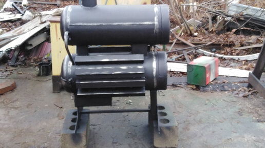 Показываю какую сварили печь из двух газовых баллонов для гаража