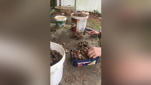 Грузинские бабульки колят только собранные грецкие орехи. Меня угостили