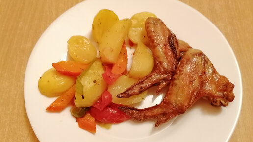Куриные крылья с картошкой и овощами запеченные в духовке