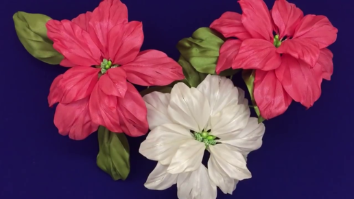 Пуансеттия из атласных лент. Красивый зимний цветок своими руками