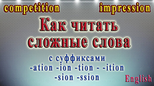 Чтение сложных слов с суффиксами -ation, - tion, -ion, -ition, -sion, -ssion. 20 урок.
