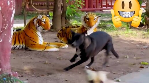 Реакция животных на большой игрушечный тигр😂🤣😎