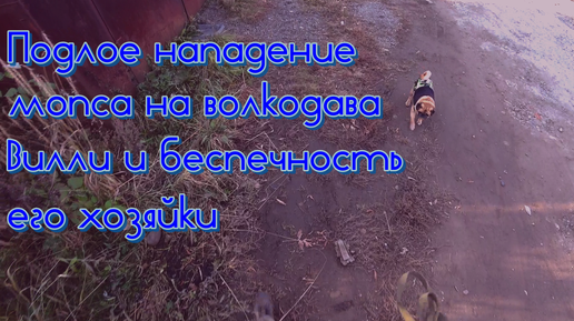 Подлое нападение мопса на волкодава Вилли и беспечность его хозяйки.