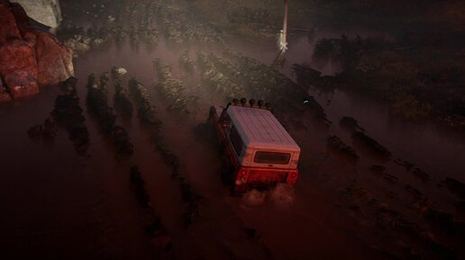 Мощный джип преодолевает тяжелое бездорожье