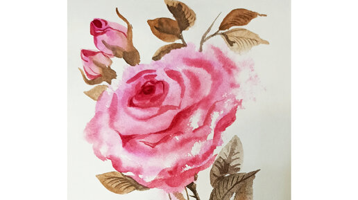 Акварельная роза написанная по сырому.