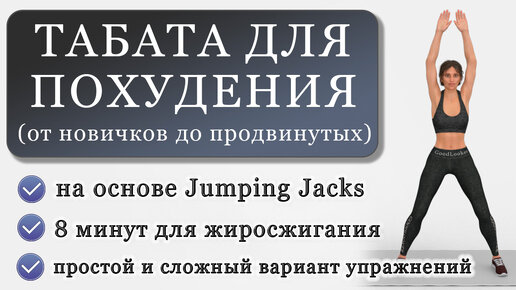Интенсивная тренировка на 8 минут для похудения для новичков и для продвинутых на основе Jumping Jacks (2 варианта упражнений)