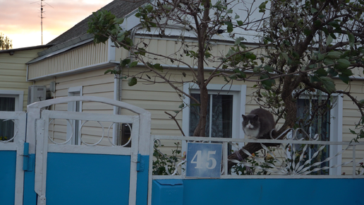 Клумба и кошка рядом с домом на улице Весёлой в станице Тбилисской Краснодарского края