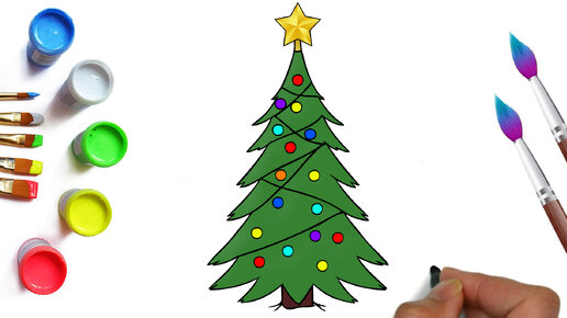 Как нарисовать ёлку со звездой и гирляндой, красивые и лёгкие новогодние и рождественские рисунки для детей и малышей
