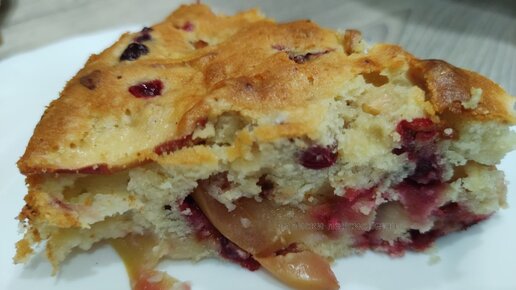 Яблочный пирог с брусникой, очень нежный с чуть кислинкой от ягоды