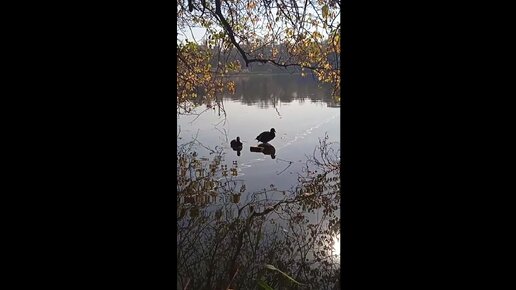 Дикие утки в городском пруду осенью