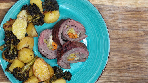 Беру мякоть говядины и овощи, праздничный мясной рулет и гарнир к нему готовы на раз-два (делюсь находкой)