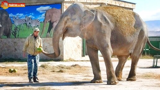 Удивительно! Слониха Магда пришла делиться с нами! Тайган.