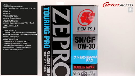 Пример видео с нашего второго канала: Масло моторное Idemitsu ZEPRO TOURING PRO 0W30 SN CF GF 5 4L