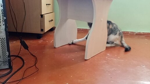 Кошка поймала мышку и играет с ней)