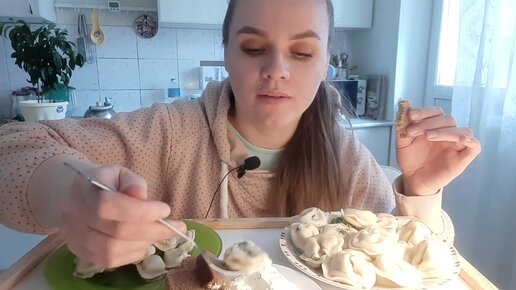 Мукбанг| Пельмени с хлебом , вареники | Ну и как тут быть ??
