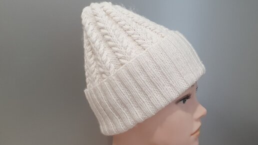 Вязаная шапка спицами/шапка узором "гиацинт'/подробный мастер класс #655