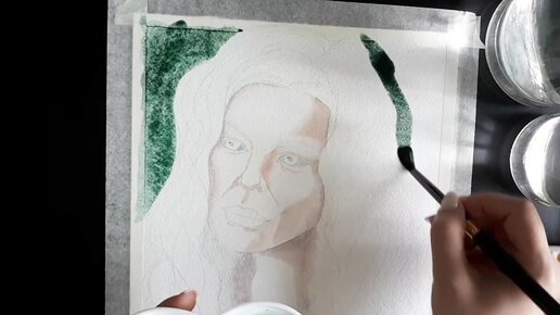 Рисую портрет Анны из Ван Хельсинг акварелью.