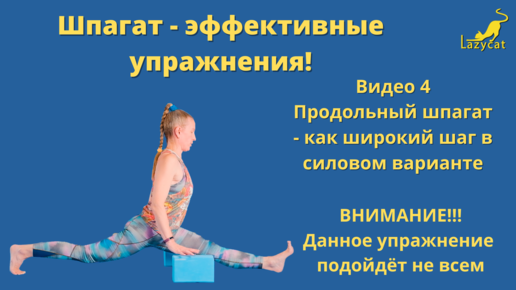 Шпагат - эффективные упражнения. Видео 4. Продольный шпагат как широкий шаг (силовой вариант).