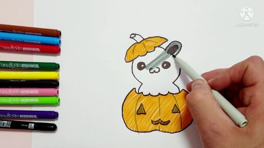 Как нарисовать котика и тыкву