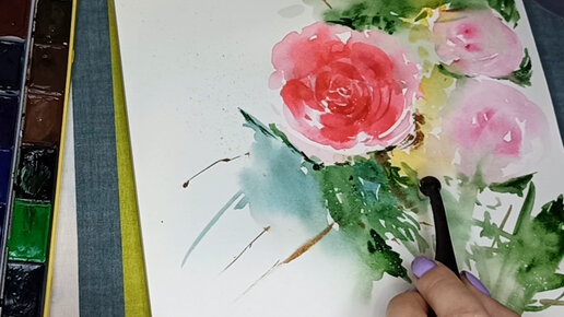 НЕЖНАЯ РОЗА С ЧЕТКИМИ АКЦЕНТАМИ И С РАЗМЫВКОЙ В АКВАРЕЛИ