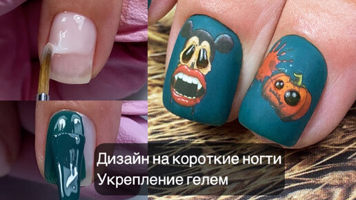 Быстрый дизайн ногтей | Маникюр на Хэллоуин | Укрепление натуральных ногтей гелем