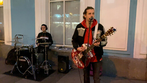 Уличные музыканты сыграли песню «Молчи» российской рок-группы «Кис-Кис» – кавер композиции на гитаре и барабанах