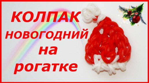 Новогодняя шапка Санты из резинок или Колпак новогодний на рогатке своими руками для начинающих Плетение из резинок