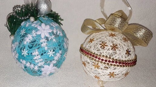 Новогодние шары из ниток и клея .