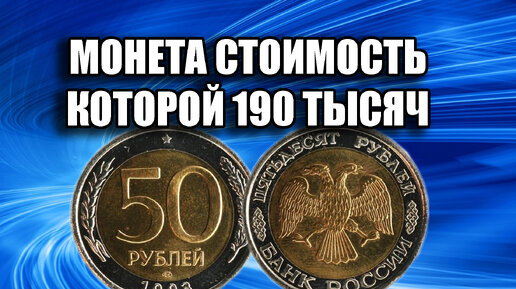 50 рублей 1993 года. Стоимость монеты 190 000 рублей. Узнай какая монета России так дорого ценится у коллекционеров.