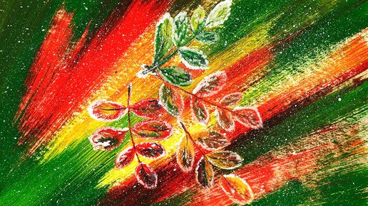 Рисуем листопад легко. Рисуем яркую осень и первый снег. Интерьерная картина.