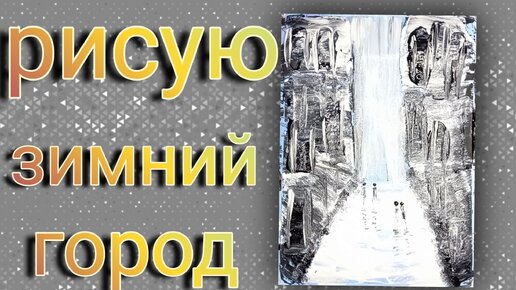 Рисуем зиму в городе пластиковой картой и кисточкой