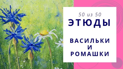5️⃣0️⃣ Рисуем васильки и ромашки гуашью. Speed painting | Серия «50 этюдов»