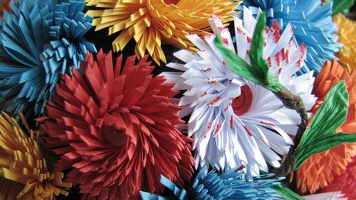 Пушистый цветок из полоски со сгибом. Квиллинг