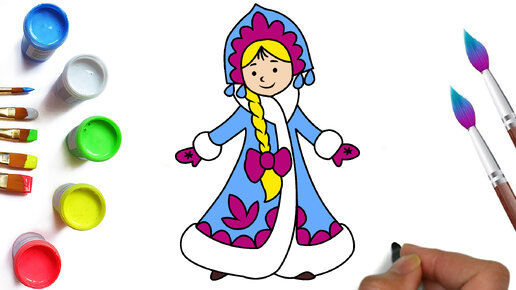 Как нарисовать снегурочку с кокошником и длинной косой, новогодние и рождественские рисунки для детей и малышей