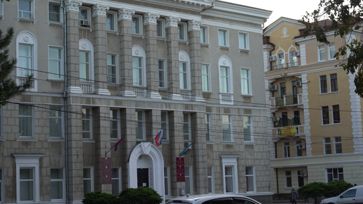 Архитектура зданий старой и новой постройки в центре города Кропоткина Краснодарского края