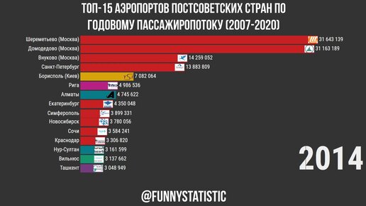 Крупнейшие аэропорты постсоветских стран по годовому пассажиропотоку (2007-2020)