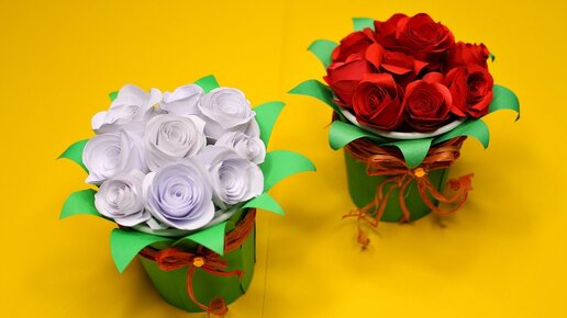 DIY Букет роз из бумаги в вазе Красивый подарок своими руками. Как сделать розы из бумаги.