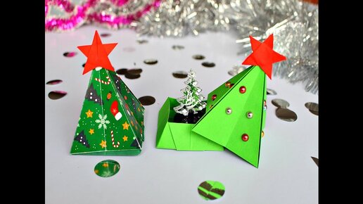 Оригами Коробочка- Ёлочка для подарка. Новогодние поделки из бумаги.
