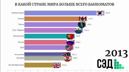 В какой стране мира больше всего банкоматов | на каком месте Россия?