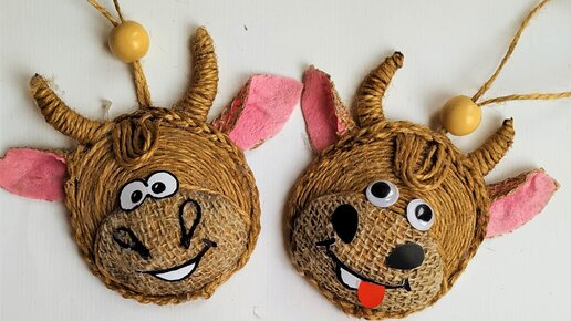 Так просто и быстро ! Бычок из джута на ёлку или магнитик.