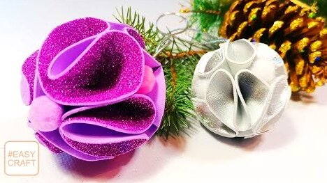 ❄ Как сделать Новогодний шар из фоамирана своими руками за 10 минут —пошаговое видео ❄