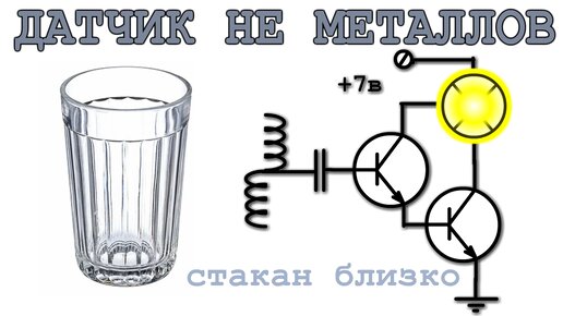 Датчик приближения СТАКАНА реагирует на пластик и стекло но не на металл.