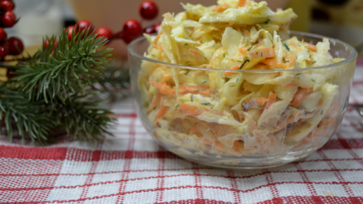 Салат Бюджетный из капусты и моркови с омлетными блинчиками