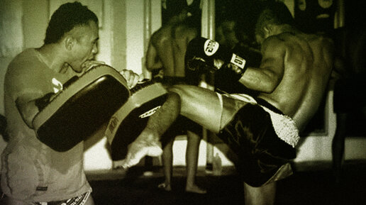 Тайский бокс. Отработка связок на падах.